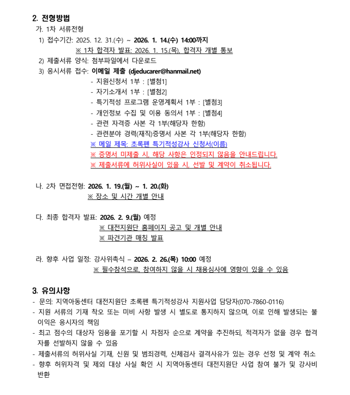 2026년 초록펜 특기적성강사 채용 안내