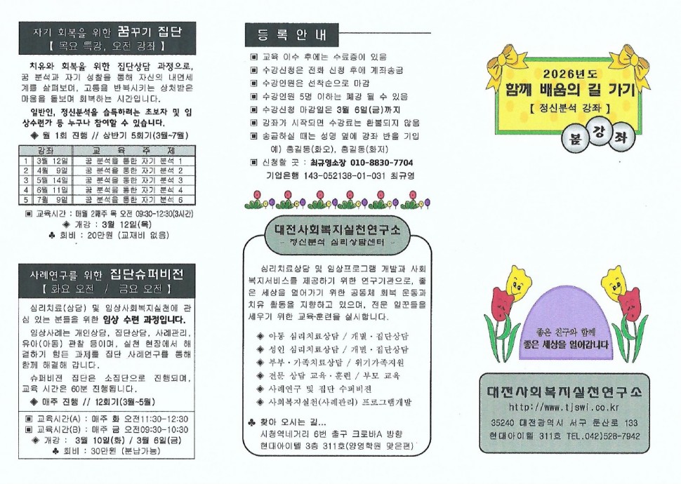 대전사회복지실천연구소 2026년 봄강좌 안내