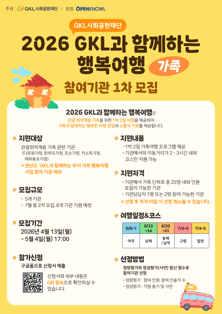 'GKL과 함께하는 행복여행'사업을 운영하고 있으니 지역아동센터의 많은 관심과 신청 바랍니다.
